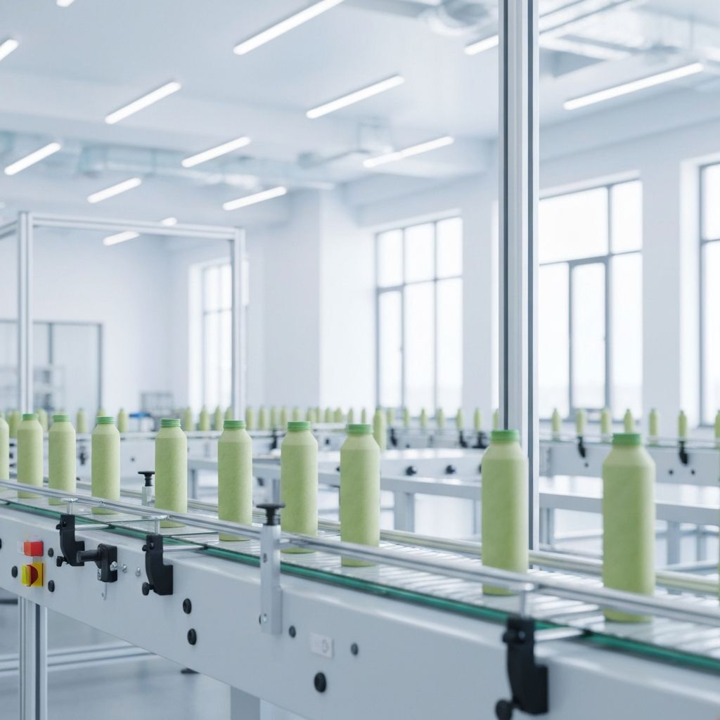Sleek automated lines producing eco-friendly paper bottles and tubes in bright, modern facilities.