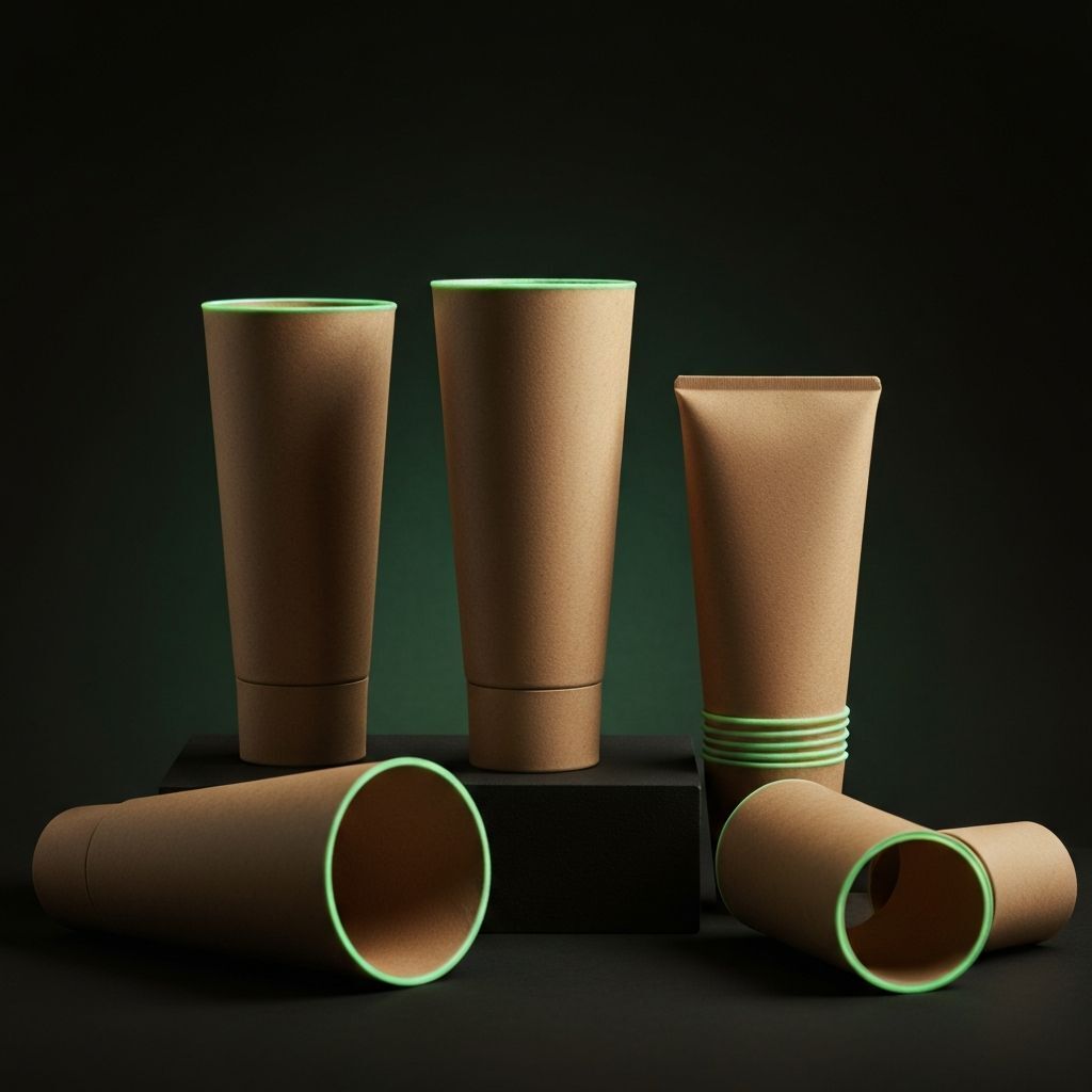 Zero-plastic tubes as part of a 100% sustainable cosmetics packaging system. From skincare to medical applications — premium feel, zero harmful chemicals.