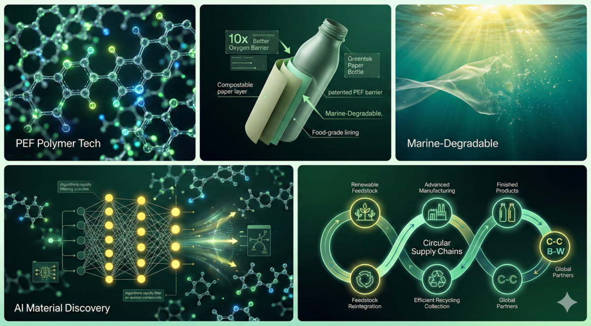 Crystal-clear PEF bottles born from renewable plant sugars, replacing petroleum-based packaging forever.